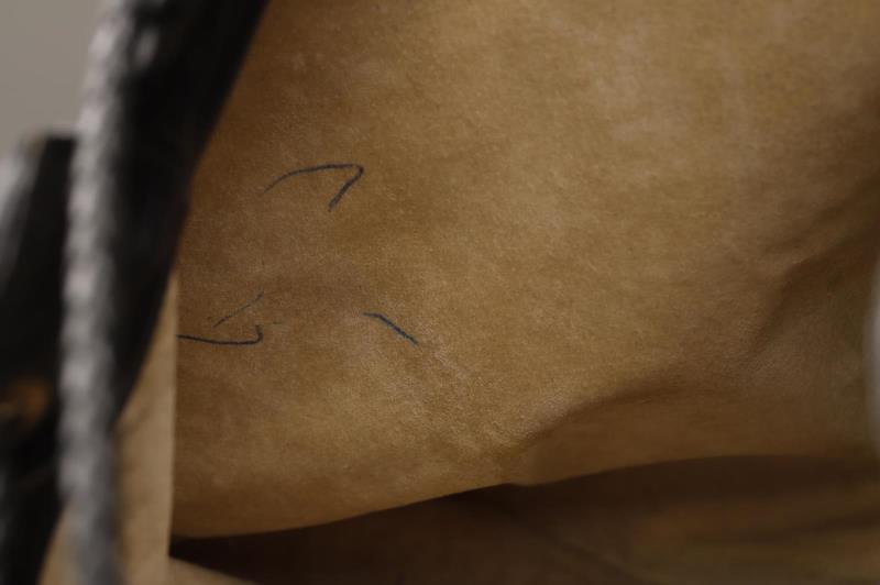 Used Mild scratch marks on Leather exterior, used corners and pen marks in the suede lining interior.