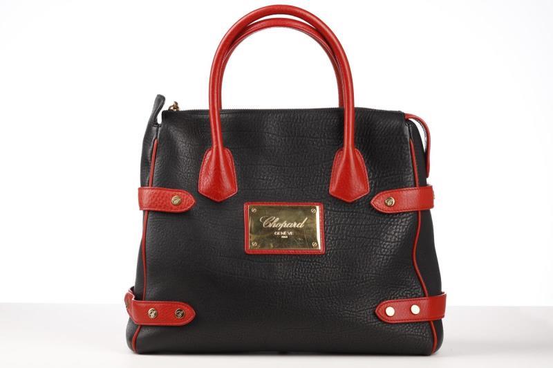 112 - 28 CHOPARD BLUE AND RED LEATHER WITH GOLD TONE PALLADIUM