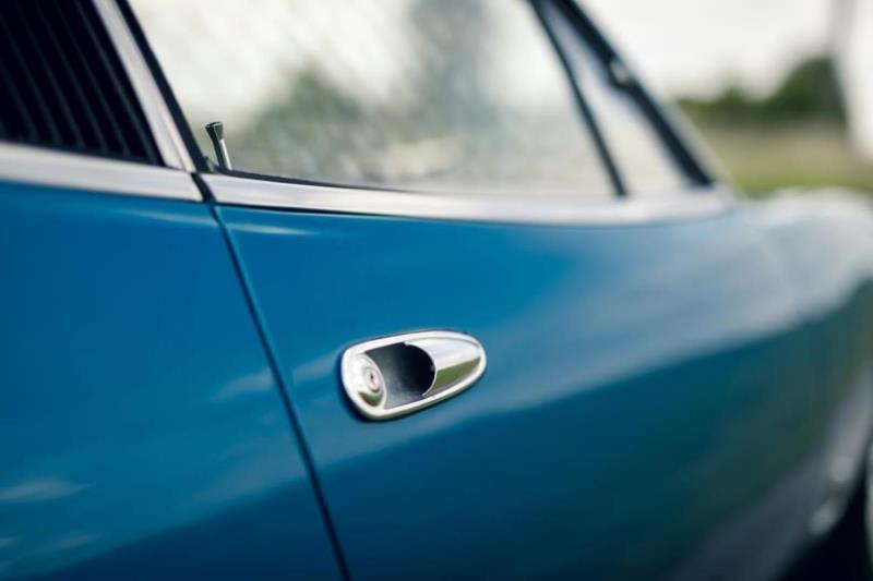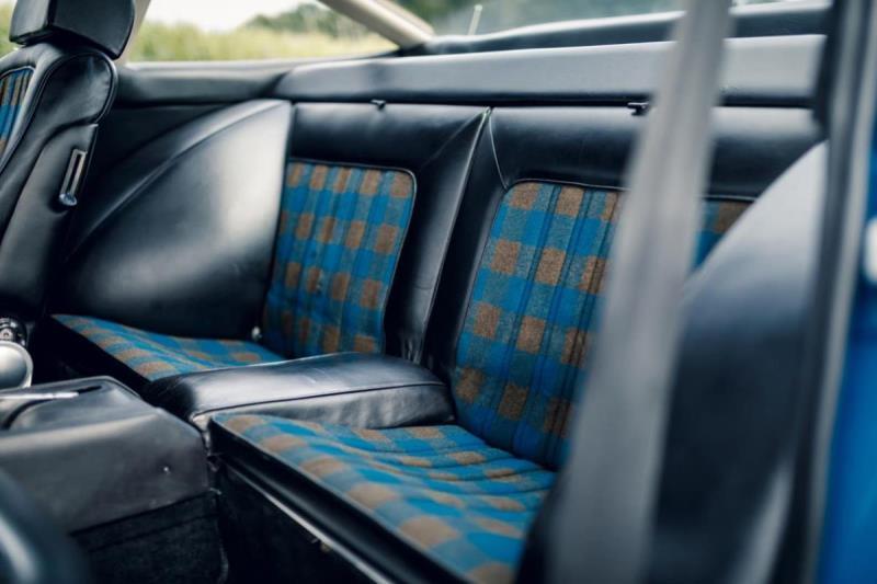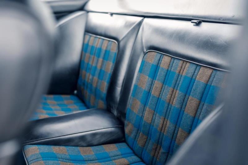 The first owner chose the beautiful colour combination of Bleu Ribot over an upholstery in black leather in combination with a blue plaid fabric for the middle part of the seats and the door panels.
