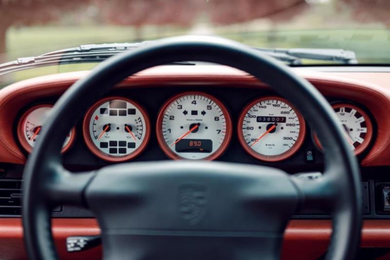 Optically, the 993 was done brilliantly, too. The gorgeous rims with hollow spokes, the big static rear wing spoiler, the wider chassis (like with the 4S), the brake calipers in red, and the white and red indicators – everything was harmonic and sporty.