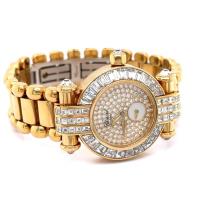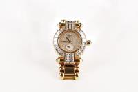 With its pure stylished silhouette the IMPERIALE watch collection offers a contemporary interpretation of the great symbols of historical empires. The arabesque motifs drawn from the embroidery of the draperies on wich monarchs placed their insigna, openworked sword shaped hands. The shape of the lugs recalls the tradition of ancient columns famed for their perfectly balanced proportions. Atribute to modern achievers. This type the 'Notre Dame' with original diamond settings on the bezel, lugs and paved diamond dial and subseconds