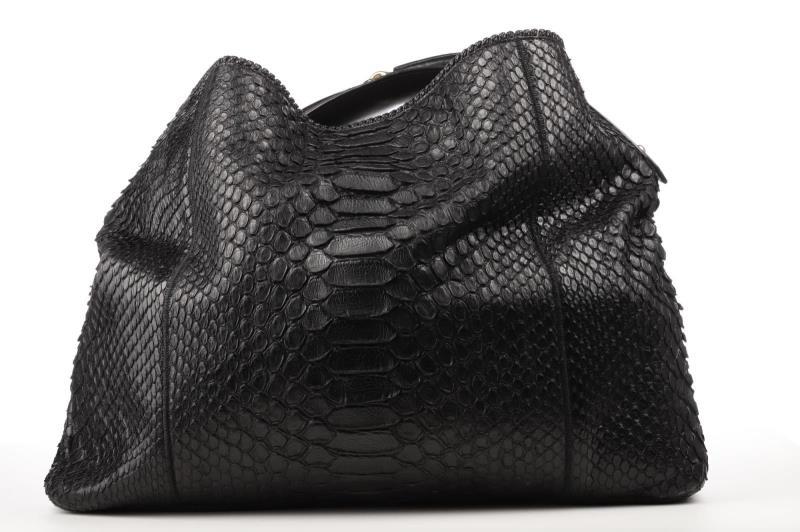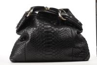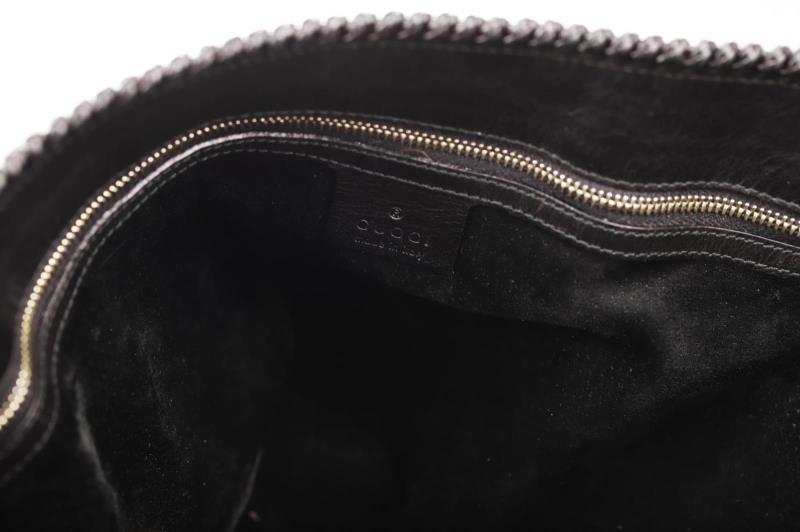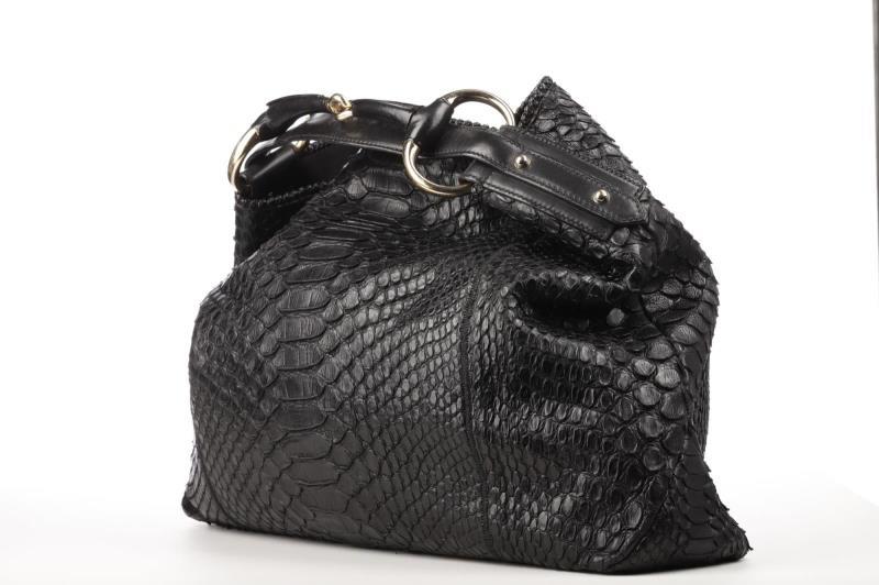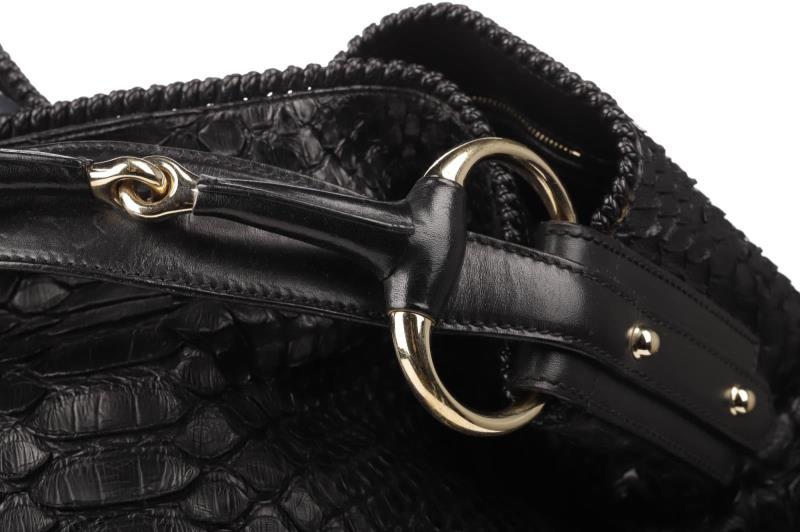 Gucci Horsebit Hobo is constructed with rich black Python skin. The interior is also equipped with a zipper pocket The zipper on this is half broken off. You can still open and close the zipper. The bag is accented with a horsebit detail on the handle and Golden hardware.