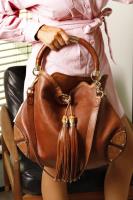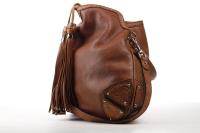 This Gucci top handle bag is crafted in brown Leather. The GG monogram is crafted on the corners of the bag and the bamboo endorsement on the tassles gives the bag an exotic look. The bag closes without any zip nor buckle thanks to the big tassles. These tassles are finished with a Gold stud. The interior of the bag features two side compartments. It comes with an extra removable shoulder strap with the gucci monogram. This allows you to hang it around easily as well as use it as a cross bag.
