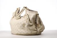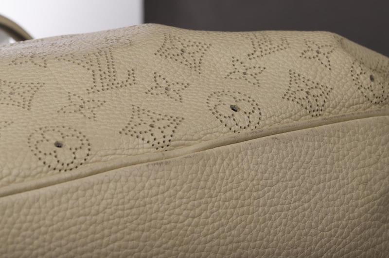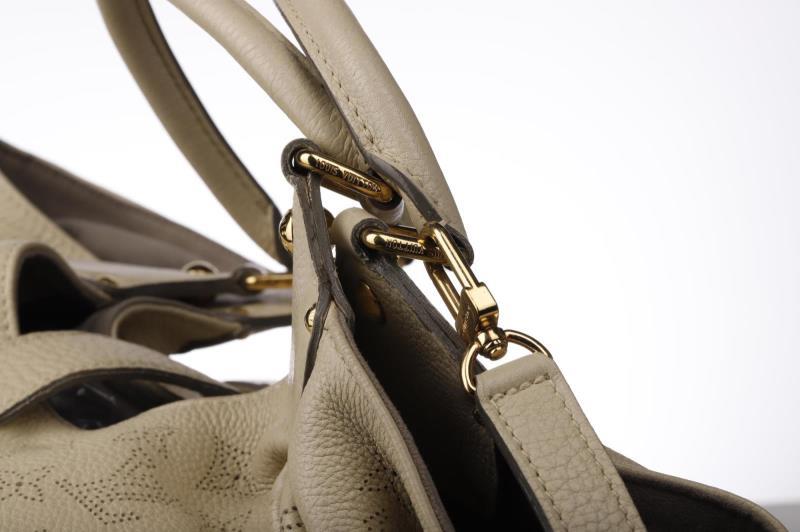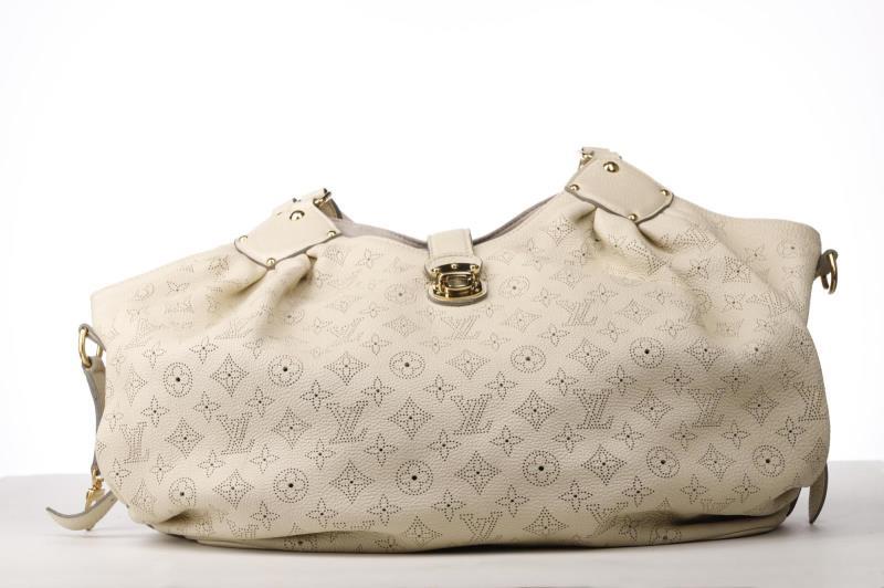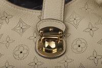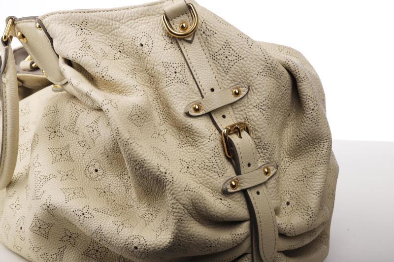 This Louis Vuitton bag from the Mahina Collection was inspired by the phases and crescents of the moon. Crafted from mahina Leather in monogram pattern, this roomy bag is large enough to hold all your essentials in style. It features a single zip closure with a flap top and a push-lock closure, a flat shoulder strap and stunning Gold tone hardware. It is made from white perforated supple calfskin Leather. The interior is lined with grey Alcantara and features two patch pockets. his is a wonderful shoulder bag for everyday use, from Louis Vuitton.