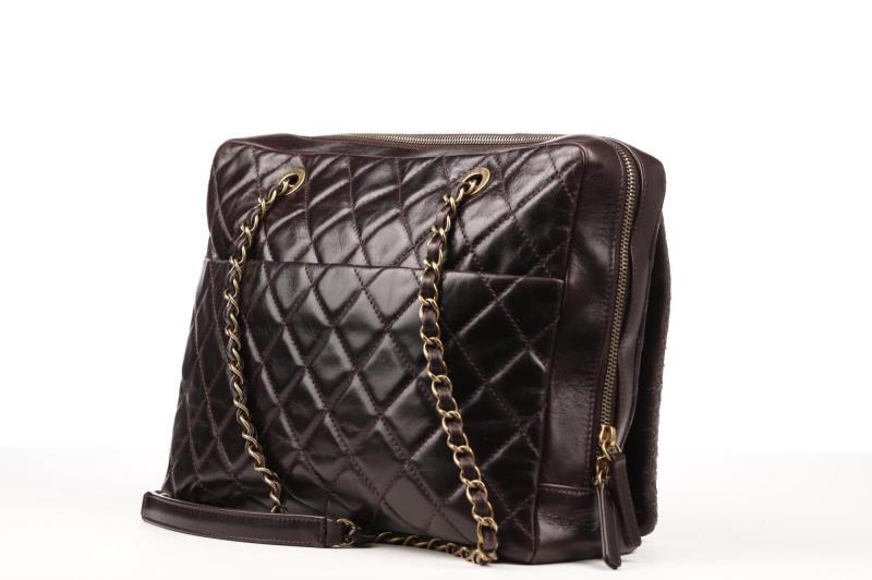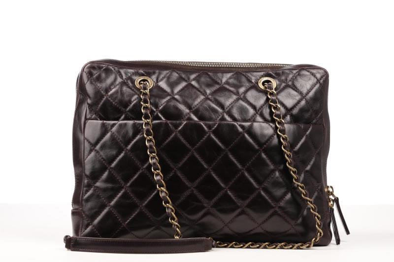 118 - 32 CHANEL BROWN BORDEAUX WITH GOLD TONE HARDWARE