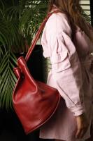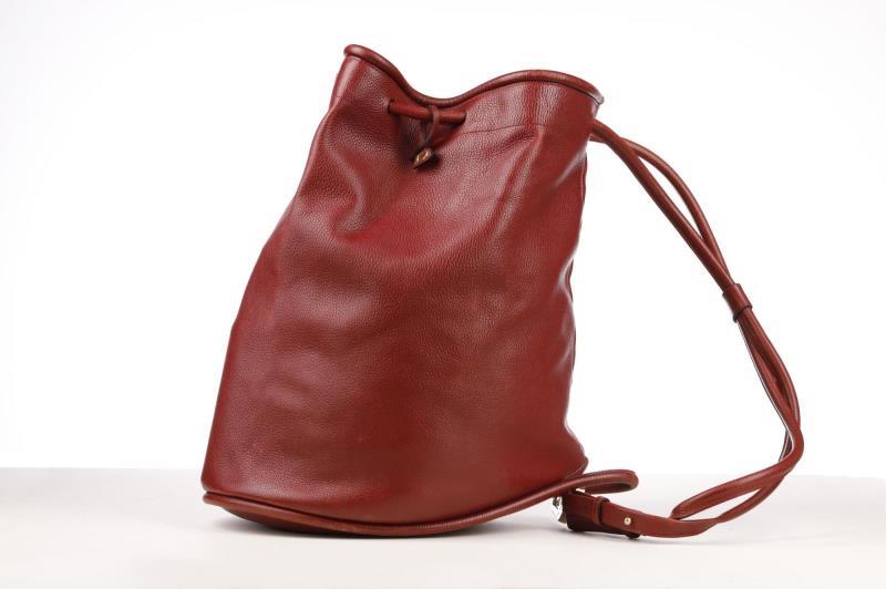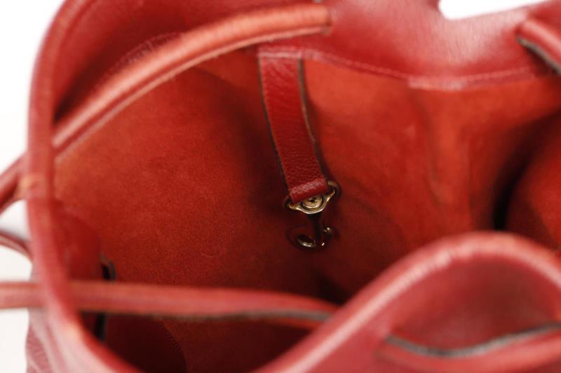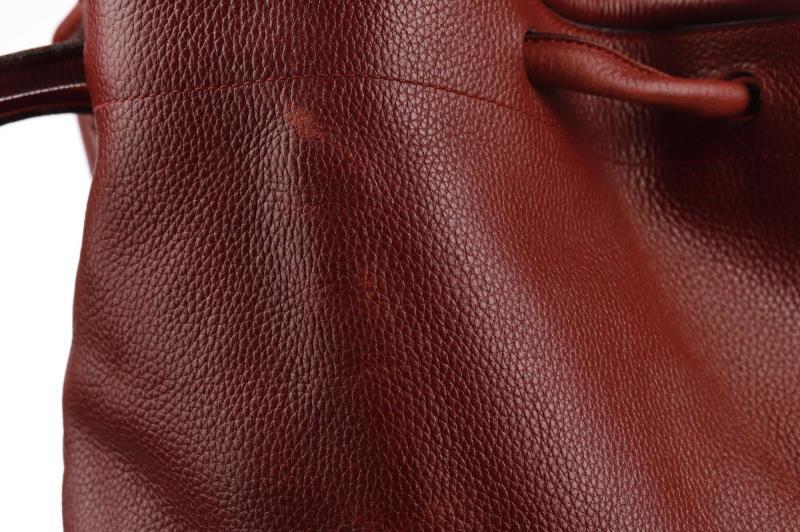 Tote around town in this Leather bag in a rich bordeaux color by Delvaux. The bag is easy to open and close thanks to the top drawstring closure,