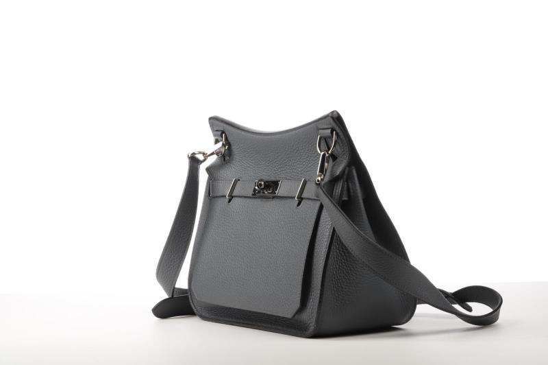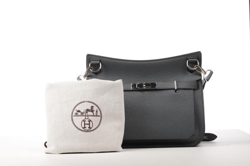 Hermès Jypsiere Shoulder Bag or Cross Body color grey with silver palladium This top item is crafted from the strong Leather from the Hermès range,Togo. The beautiful gray color with silver palladium finish is a real Eye catcher. The bag opens and closes with a cover and twist lock closure. The shoulder strap is adjustable to your body length. Inside the bag one large and clear space. Front zippered storage pocket and back one large and one medium storage pocket. This bag has hardly been used by the first owner. The bag comes in the original dust bag.