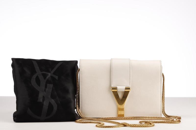118 - 57 SAINT LAURENT WHITE WITH GOLF TONE PALLADIUM