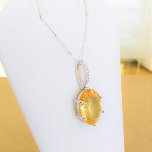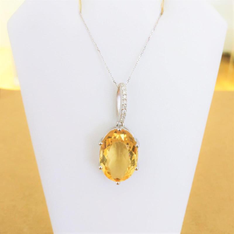 119 - 69 19.69ct Citrine and Diamond Pendant with Chain