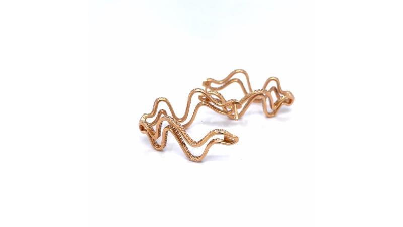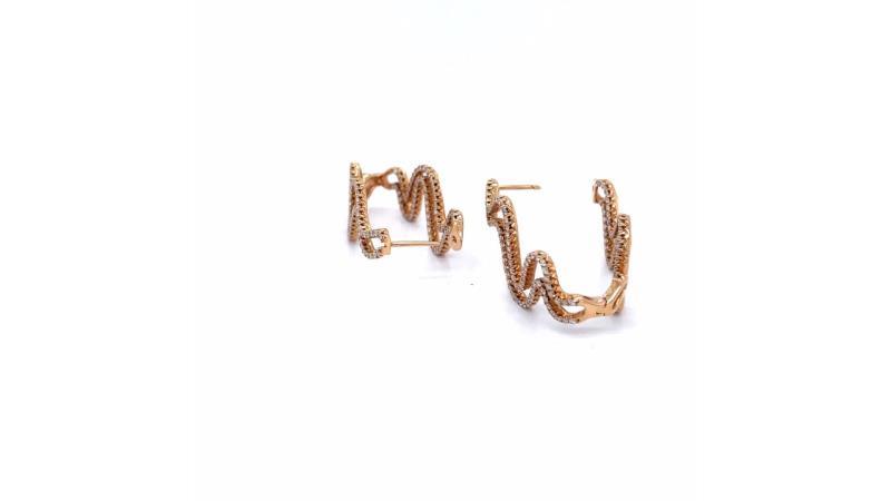Fancy Swirl earRings with diamonds set on the outside, rosé gold 18K (inscribed) , sizes length 3,5 cm and width 1,5 cm with 310 diamond stones brilliant with total carat weight 1,52 ct. Total earRings weight together 8,277 grs.