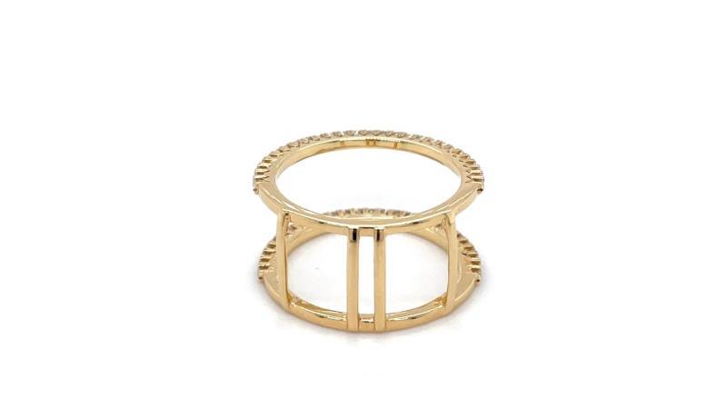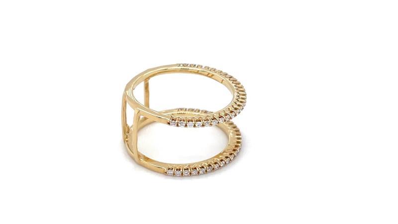 Fancy 2-Row Diamond Ring yellow gold 18 K, Ring size 52 (adjustable) with 2 rows of 27 diamonds each mounted on the outer side of the Ring. Total carat weight of diamonds 0,29 cts and total Ring weight 3,366 grs.