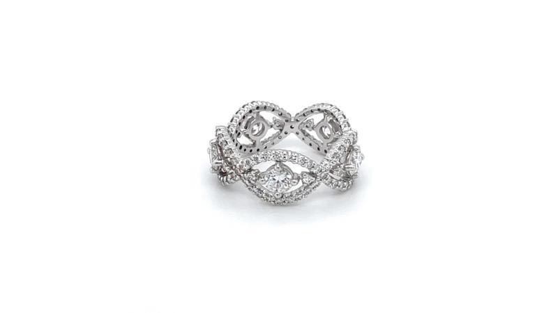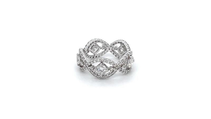 Flow Diamond Ring white gold 18K, Ring size 53 with 5 larger diamonds approx 0,21cts each and 110 smaller diamonds set in two waves. Total carat weight of diamonds 5,09 cts and total Ring weight 4,078 grs.