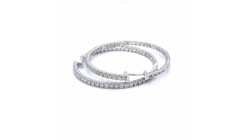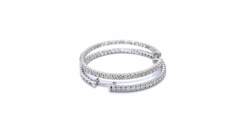 Pair of diamondhoop earRings white gold 18K set with diamonds on outer half and inner half. Total carat weight of diamonds 1,00 cts and total weight (2 earRings) of 12,208 grs.