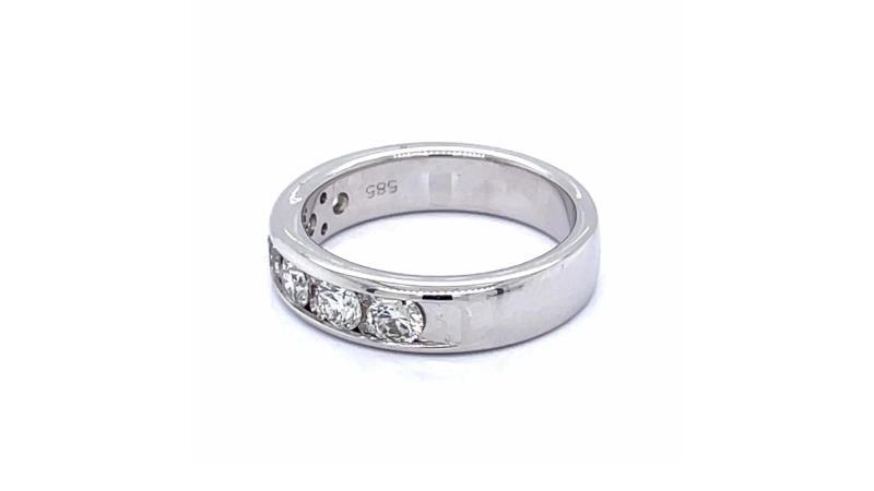 Diamond Engagement Ring white gold 14K, Ring size 52 (adjustable) with 6 brilliant diamonds G-H VS2 of approx. 0,10 ct each and 10 deep-set brilliant diamonds. Total carat weight of diamonds 0,80 cts and total Ring weight 5,118 grs.