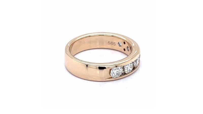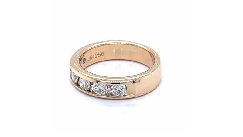 Diamond Engagement Ring yellow gold 14 K, Ring size 52(adjustable) with 6 brilliant diamonds G-H VS2 of approx. 0,10 ct each and 10 deep-set brilliant diamonds. Total carat weight of diamonds 0,80 cts and total Ring weight 5,087 grs.
