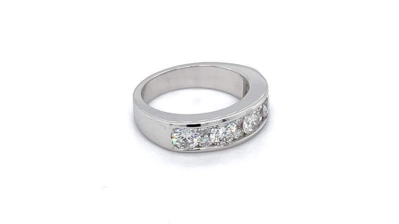 Diamond Engagement Ring platinum, Ring size 51,5 (adjustable) with 5 brilliant diamonds G-H VS2 of approx. 0,30 ct each and 8 deep-set brilliant diamonds. Total carat weight of diamonds 1,74 cts and total Ring weight 9,348 grs.
