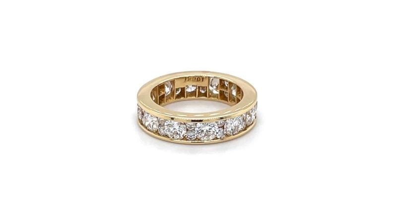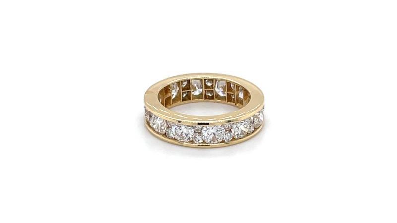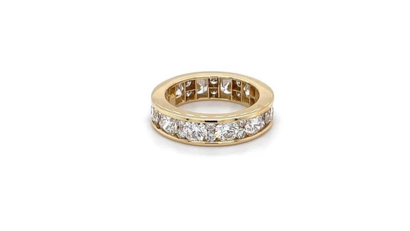 Diamond Engagement Ring yellow gold 18 K, Ring size 50 with 12 brilliant diamonds G-H VS2 of approx. 0,23 ct each and 24 deep-set brilliant diamonds. Total carat weight of diamonds 3,48 cts and total Ring weight 5,038 grs.