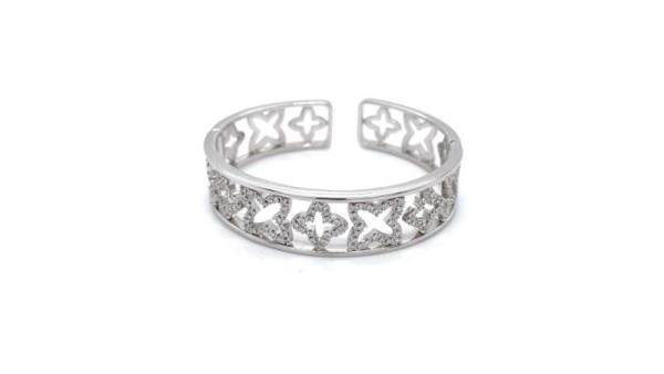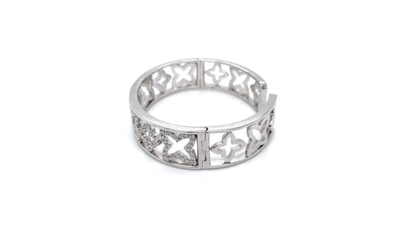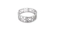 Fancy Star Diamond bracelet white gold 18K , internal diameter 5,60 cm with 148 diamonds set in 7 star shapes, flanked by 6 metal stars-hapes. Total carat weight of diamonds 1,63 cts and total bracelet weight 42,306 grs. Inscription on inside bracelet "1614 AL"