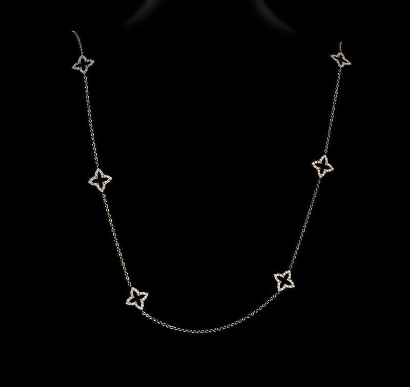Star Diamond Necklace, yellow gold 18K , size 90 cm,with 10 stars set with 400 diamonds in total, total carat weight of diamonds 5,61cts and total weight of necklace 23,199 grs.