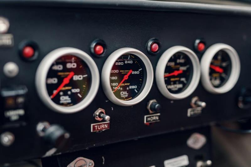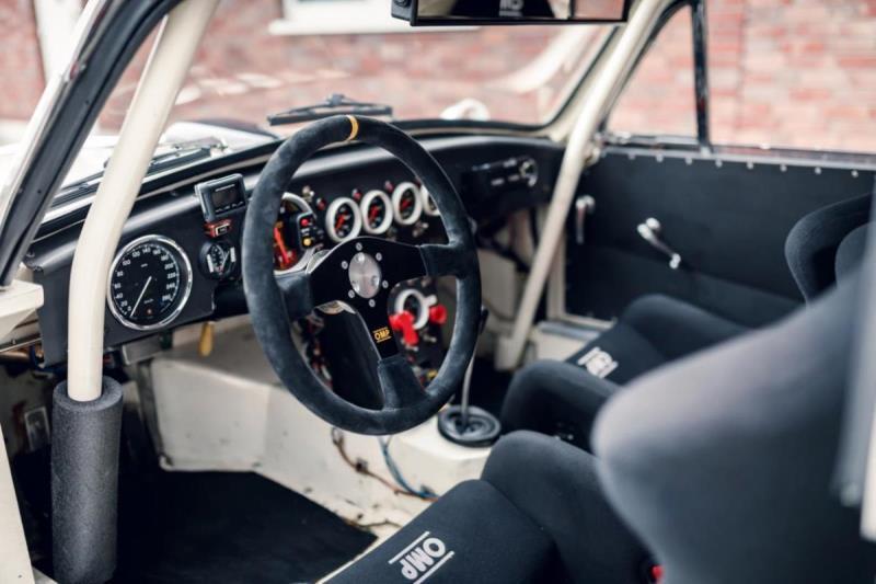 Obviously, comprehensive changes were made to achieve this. As can be seen today, the chassis was reinforced and the suspension and brakes reworked, while the transmission was re-built and the clutch upgraded. The original engine was replaced by a similar Aston Martin engine built to Vantage specifications by renowned Aston Martin specialists Steel Wings.