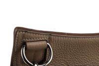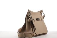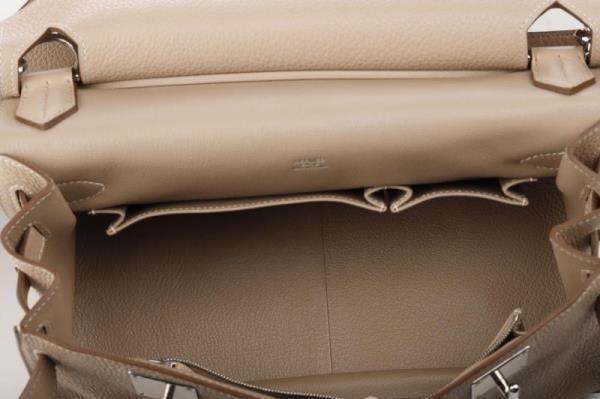This top item is crafted from the strongest Leather from the Hermès range namely togo. The beautiful beige color with the silver palladium finish is a real Eye catcher. The bag opens and closes with a cover and twist lock closure. The shoulder strap is adjustable to your body length. Inside the bag one large and clear space. Front zippered storage pocket and back one large and one medium storage pocket. This bag has hardly been used by its first owner.