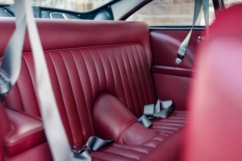All works executed are documented very well through invoices and photos, and the quality of the restoration is high. As painting, the owner chose the original Aston Martin colour “Snow Shadow Grey”. The interior is upholstered with Connolly leather in matching Bordeaux red. The original Wilton carpets blend in very well, too.