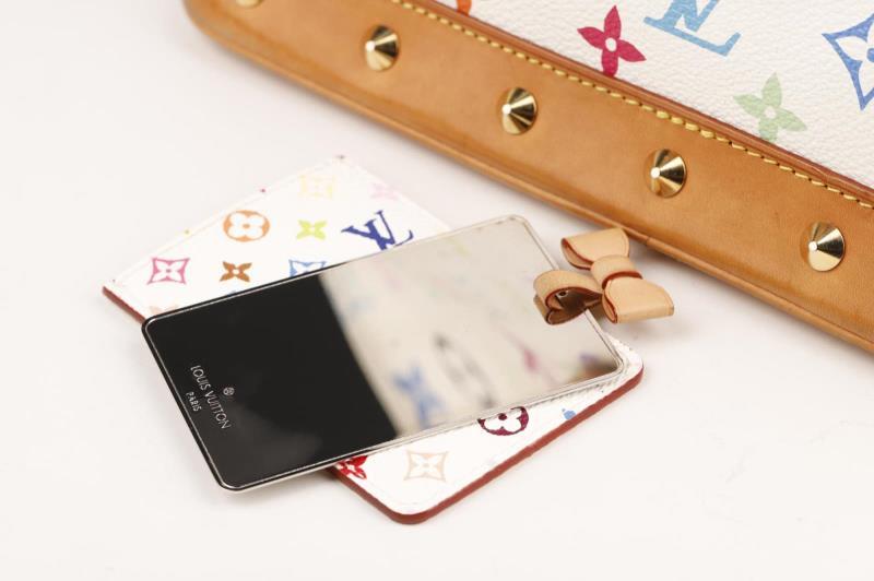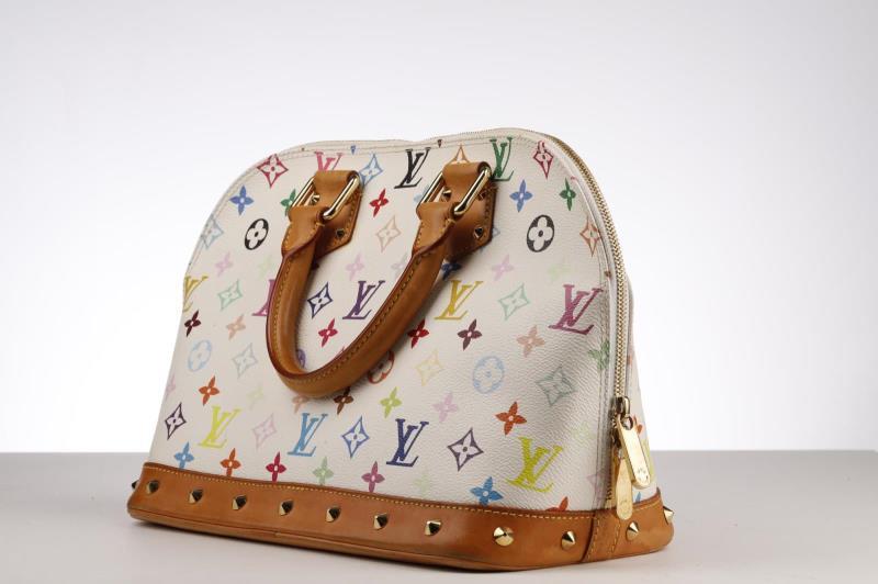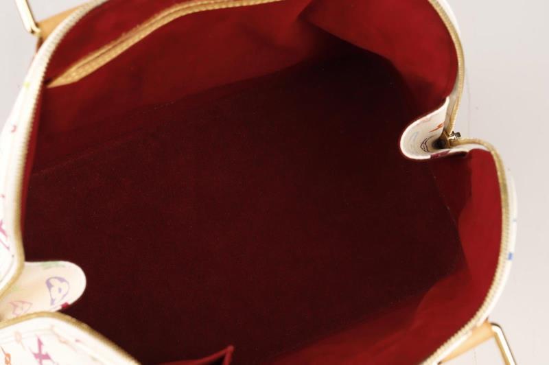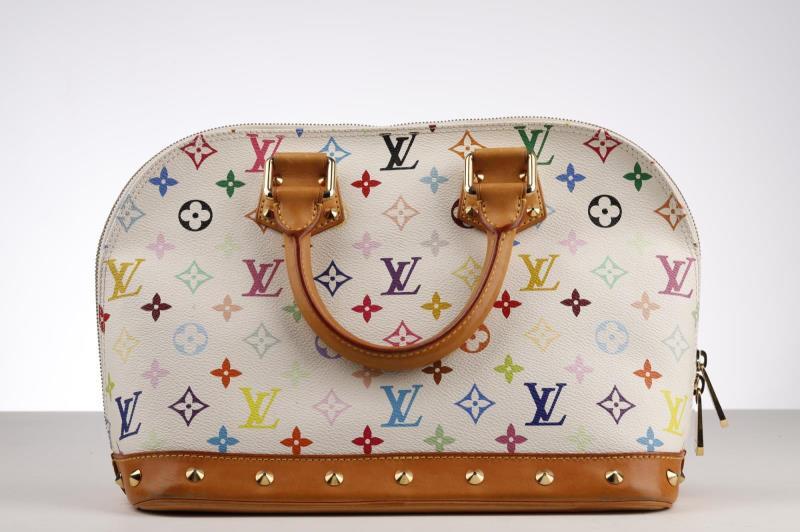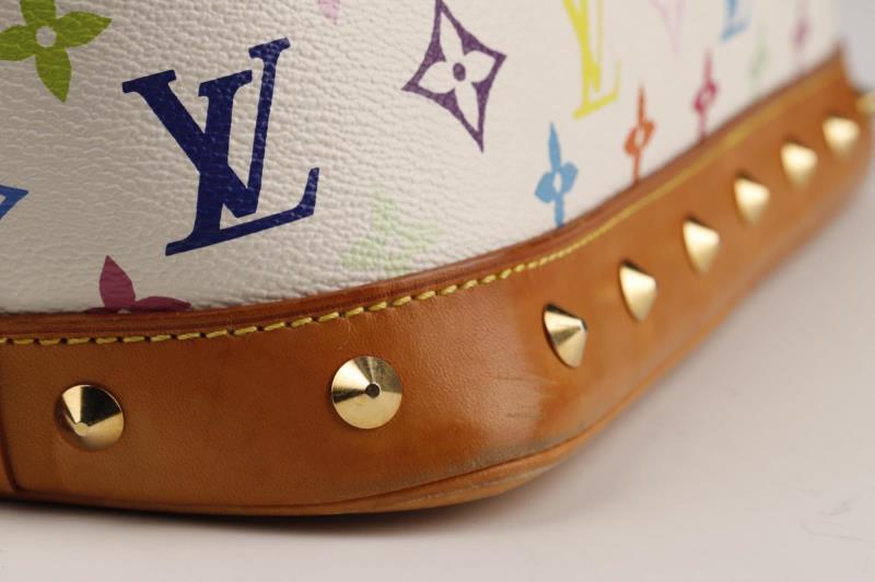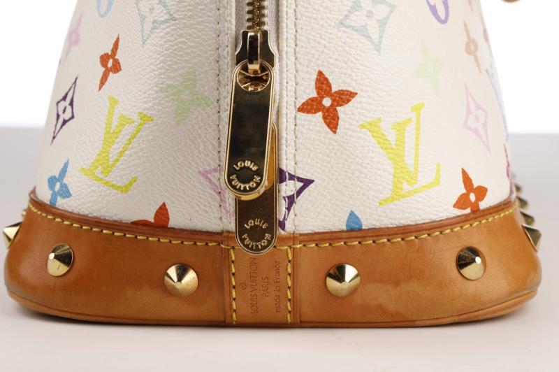 Louis Vuitton Handbag Ltd. Ed. Takashi Murakami Multicolore Alma in White Multicolore Monogram and Golden Brass hardware.This limited edition is a timeless and feminine bag that Louis Vuitton lovers everywhere will want to collect. Monogram Multicolore canvas with natural cowhide trim and Golden hardware. It has a zipper frame top, beautiful studs, S-lock closure and exquisite Gold tone hardware details. The Japanese pop artist, Takashi Murakami decided to revamp the traditional monogram toile and give it a splash of colour. He created a new vibrant canvas pallet with 33 silkscreened colours. Together with Marc Jacobs, the Multicolore line became a huge success!