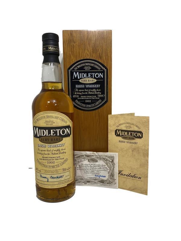 A rare and collectable bottle of Midleton Rare from the 1992 vintage when the master distiller was Barry Crockett. This Bottle has Writing on the certificate and the back of the distillery invite. The box and Bottle are in Good condition,just to be aware of the writing on the paper work. Bottle Number 3949