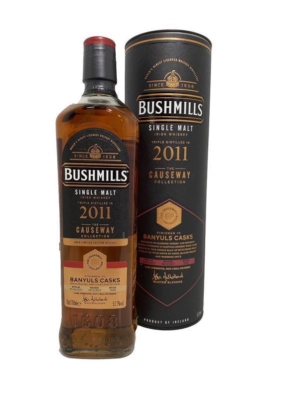Bushmills Causeway Collection 2011 Banyuls Cask, was distilled in March of 2011, and bottled in early 2020. It was initially matured for about six years in ex-bourbon and ex-Oloroso casks, then fnished for around 3 years on Banyuls casks. This was an exclusive release for the scandanavian fans of bushmills. Bottle and gift tube are in great condition.