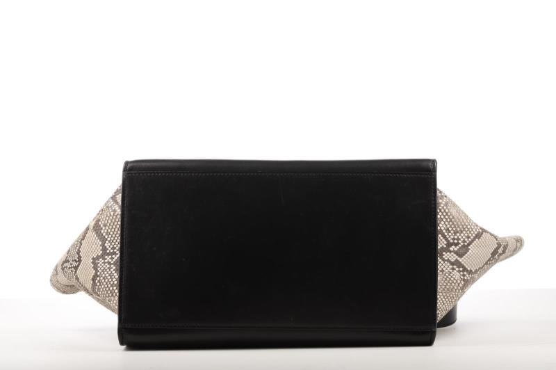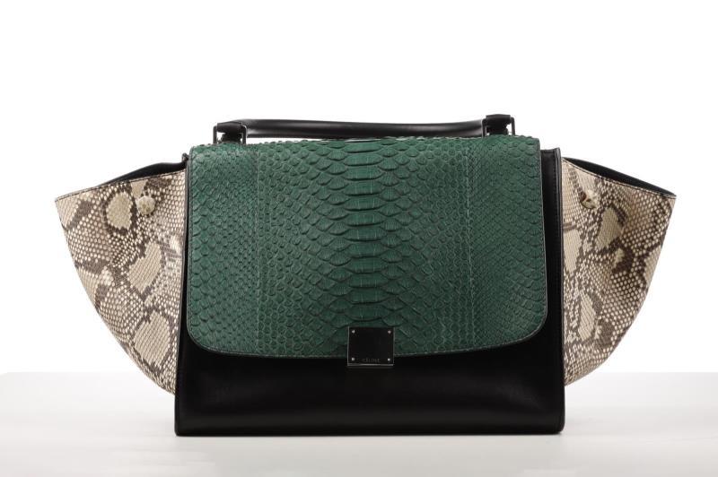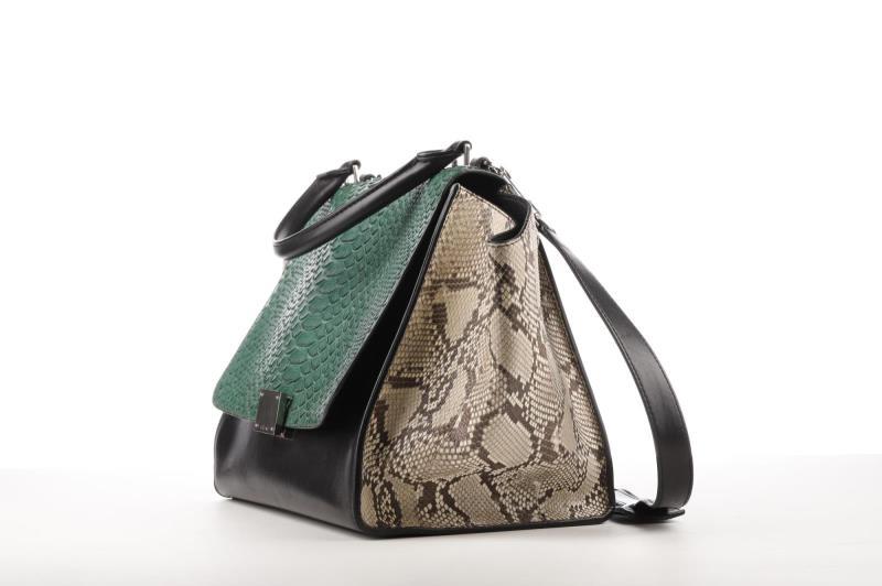 Exquisitely designed to perfection, this Celine bag is Made out of exotic Python Leather in three catchy colours, this bag is gorgeous for its subtle combination of box flap and signature Trapeze tote style wings. It features a top handle and a shoulder strap. The Leather lined interior is spacious to accommodate your essentials. This medium trapeze bag could be your most stunning addition to your collection.