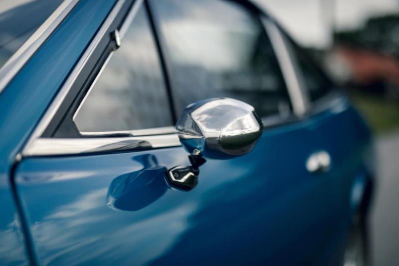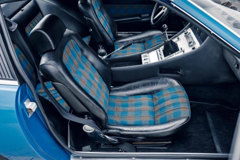 The first owner chose the beautiful colour combination of Bleu Ribot over an upholstery in black leather in combination with a blue plaid fabric for the middle part of the seats and the door panels.