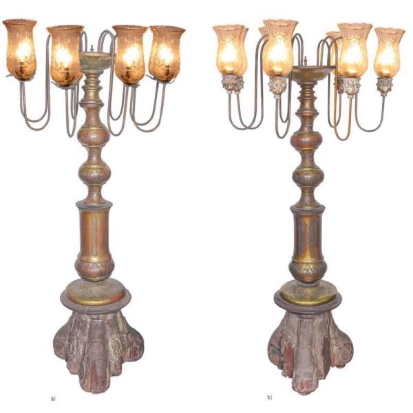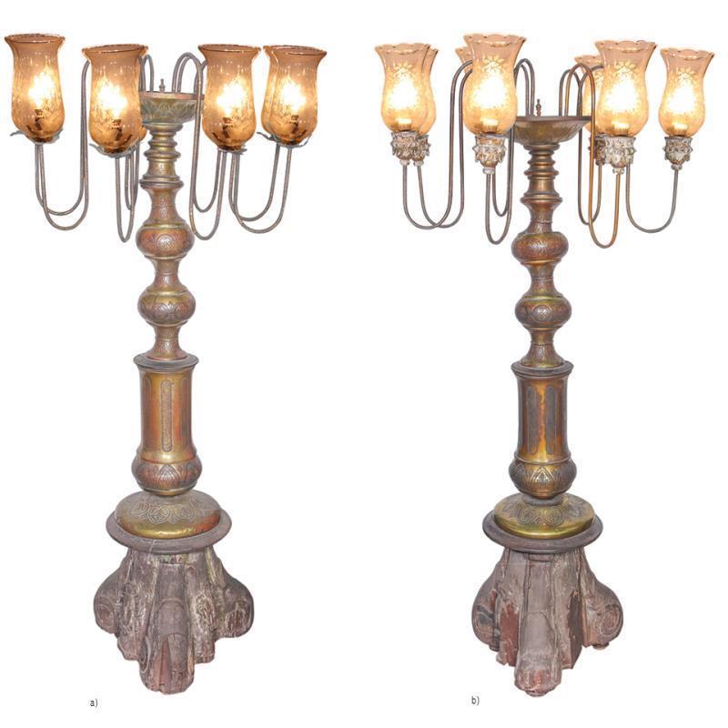 115 - 70 A Pair of Church Candelabra - a) An 8-Piece Virina Hacha b) A 7-Piece Virina Hacha
