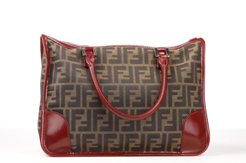 118 - 30 FENDI MONOGRAM HANDBAG WITH BORDEAUX DETAILING WITH SILVERTONE PALLADIUM
