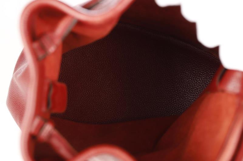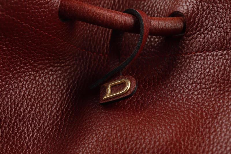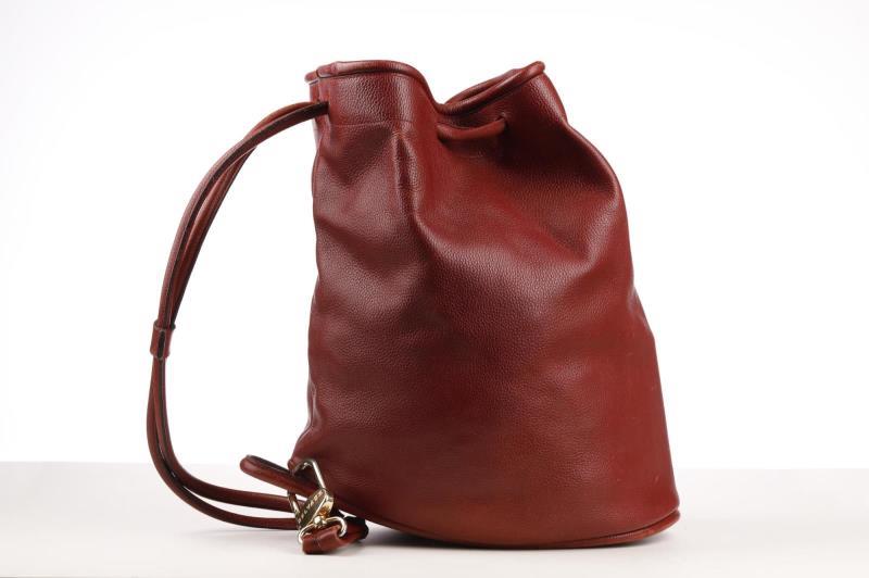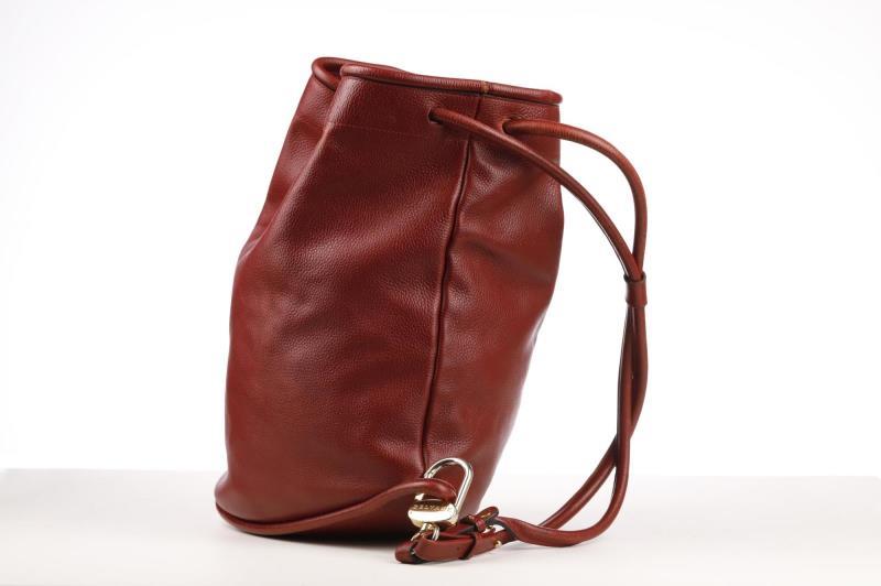 Tote around town in this Leather bag in a rich bordeaux color by Delvaux. The bag is easy to open and close thanks to the top drawstring closure,