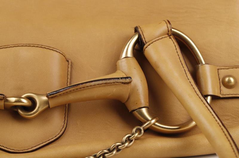 Vintage Gucci horse bit bag can be carried by hand or over the shoulder. The bag opens like a satchel, and features Gucci's classic gilt metal horse bits. The interior is in Leather, Very Good condition. Internal pocket and serial number inside.