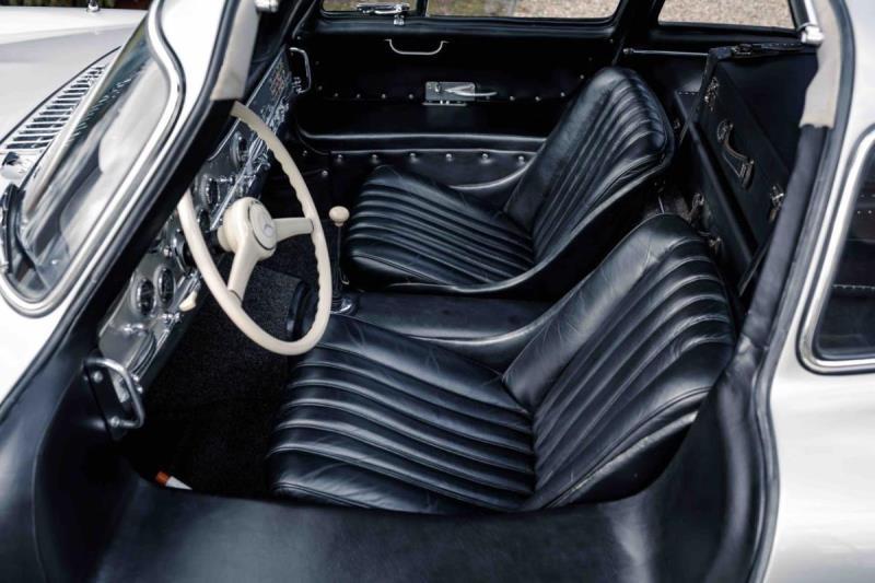 In addition to all this, Gary Gallup also had front disc brakes fitted in the factory. This was an option never available on the Gullwing and was only introduced on the 300 SL Roadster in 1961. Colour-wise, he chose a classic combination of paint in DB 180 silver-grey and an interior of black leather.